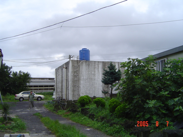 | 韓国の豚舎にある豚の飲料用貯水槽です。 発酵菌タンクを貯水槽の送水管に連結しています。 屋上にあるブルーのタンクに発酵菌がはいってます。 豚が水を飲むと、水と発酵菌が送られます。 発酵菌を豚に飲ませているのです。 豚の便がサラサラしたものに変わり、臭いも極端に軽減されます。 豚舎への散布との併用により悪臭が無く、豚も気持ちよさそうです。 |