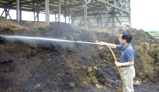 堆肥置場の消臭です。 畜舎へ噴霧すると畜舎全体が無臭になり、 家畜のストレスも解消されます。 |