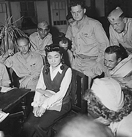 | 戦後、日本を占領したアメリカ軍は、ゼロ・アワーの関係者を捕らえるべく血眼になって探しはじめた。しかし東京ローズを始めスタッフの多くは戦後の混乱の中に姿を消してしまっていた。そこである通信社は一計を案じて罠をかけることにした。元、ゼロ・アワーのアナウンサー、東京ローズが取材に応じてくれたら、5千ドルを与えるという条件を出したのである。5千ドルは当時としては破格の金額で、今のお金では贅沢な世界一週旅行が出来るほどの大金である。東京ローズの独占インタビューに成功したともなれば、天皇のインタビューにもまさるほどの大金星となるからだ。 | |||||||||||||||||||||||||||||||||||||||||||||||||||||||||||