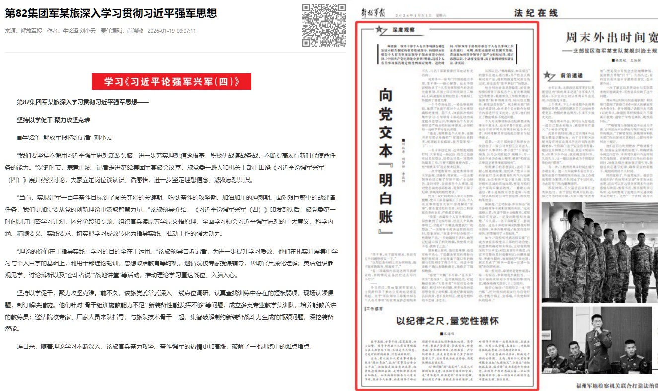 『解放軍報』第82軍が習近平思想を学習する様子を報道