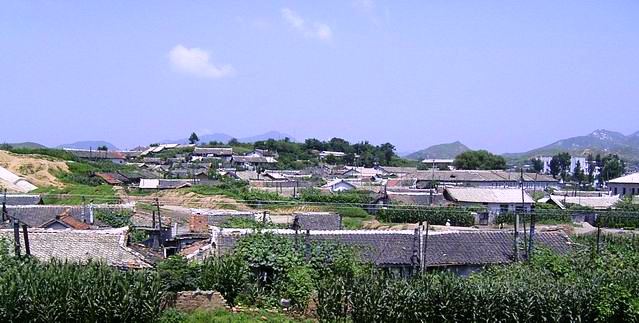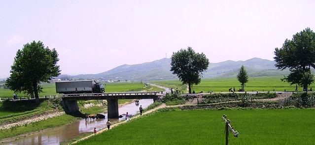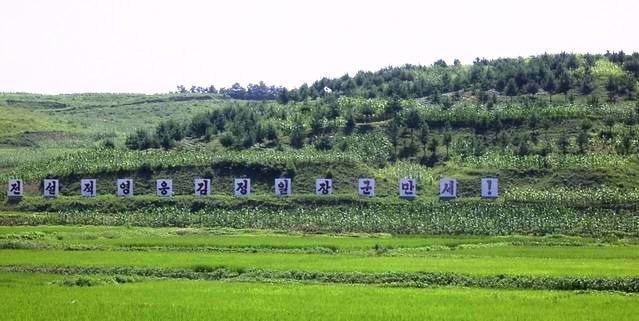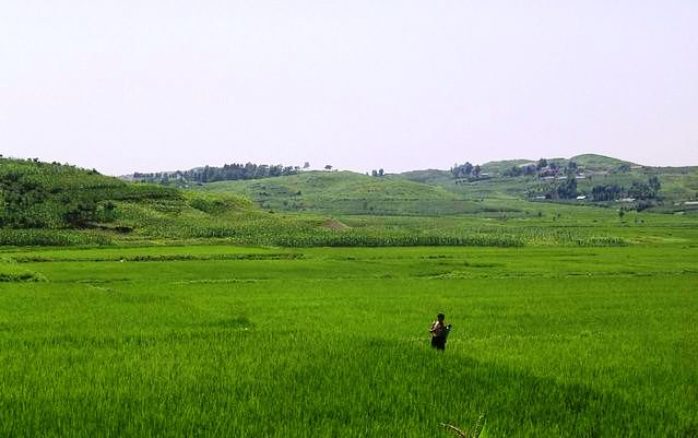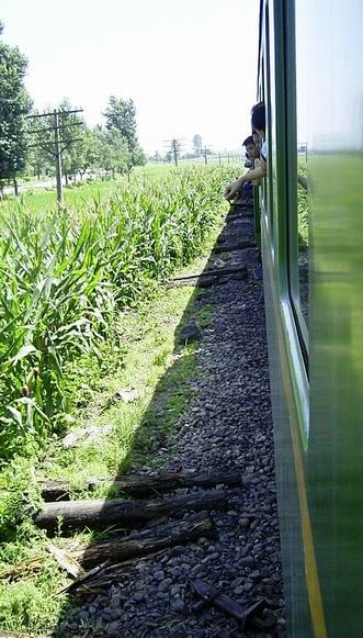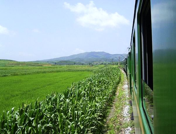鉄道沿線は、麦畑とトウモロコシ畑ばかりです。北朝鮮農民は、農業合作社