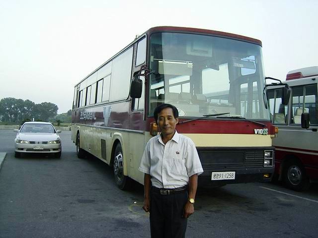 ↑私たちの観光バスと運転手の金さんです。ちなみに、ガイドさんや運転手さんへのチップ代は、中国貨40元を前もって徴収されました。この運転手さんは、人民軍に4年間服役したそうです。