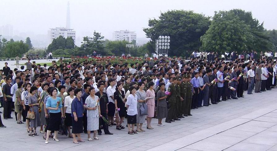 普通は、こんな大勢の朝鮮人を写真におさえることは、なかなか難しいですよ。金日成銅像に献花する為、整列している場面です。