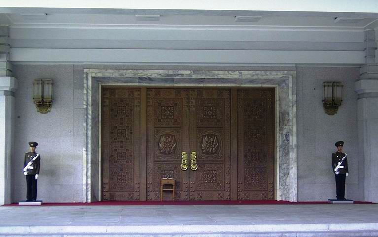 この金主席記念館の銅門は、一つでも16トンの銅を使っているそうです。兵隊さんは、手を振って写真を断ろうとするにも関わらず、撮ってしまいました。