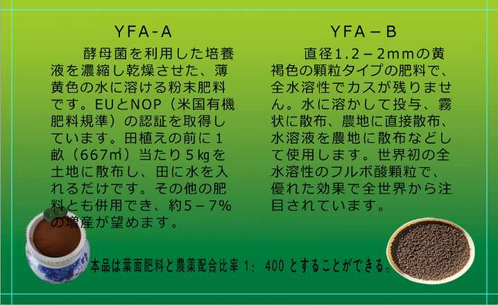 それは乳酸菌+酵母菌+フルボ酸という三つの成分が含まれた有機肥料で、すでにEUで検査基準合格の認定を受けている。