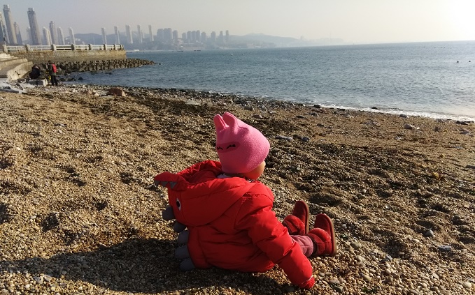 夏は海水浴客でいっぱいのビーチも、冬の今は人影がまばらで、わずかに貝をひろう人が数人いただけだった。