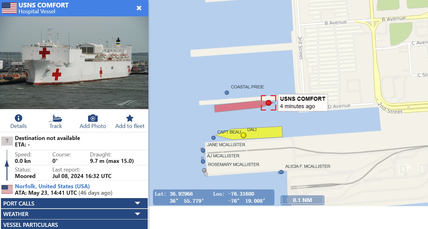 そのDALI号の近くにいるのが、病院船のCOMFORT号で、DALI号のコンテナの中にいた、子供たちが救出され治療を受けている。
