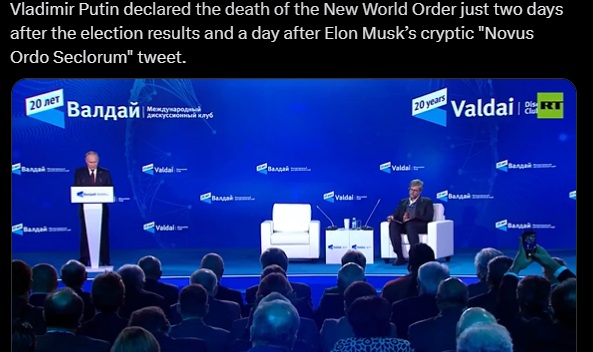 しかし、プーチンはヴァルディ国際会議で、「新世界秩序は終わった」と述べ、イーロン・マスクの発言に異議を唱えた。