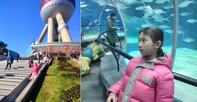タワーの隣には海洋水族館があって、大連の水族館よりは小さいが、地下の長いトンネル型水槽では魚を堪能できる。
