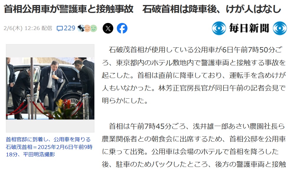 そういえば、首相の公用車は、去年12月1日にも首相の地元鳥取県で、警護車と接触事故を起こしたばかり。