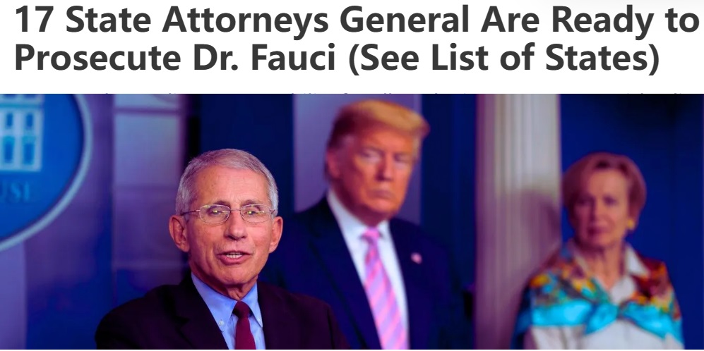 17州の検察官が、連邦法では裁けないファウチを、州法で裁くことを提案して、署名を集めているというのである。