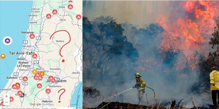 火事の発生場所が、アラブ人居住地やエルサレム東側を避けているということで、ハマスによる放火が疑われる。