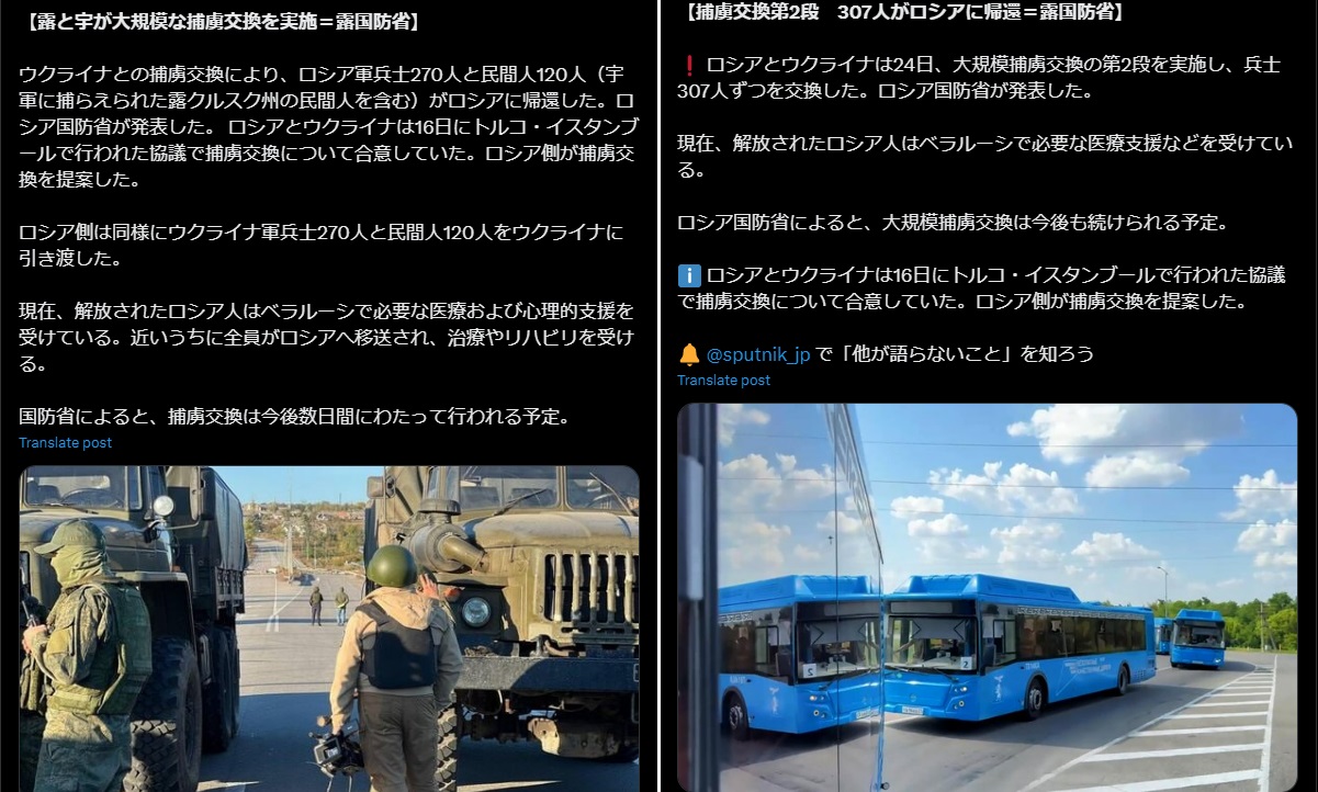 第一陣として、ロシア軍兵士270名と民間人120人、第二陣として兵士307人がバスで祖国に帰還した。