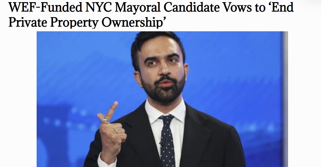 どうやら、ゾーラン・マムダニ氏の背後には国際経済フォーラムがいて、彼が唱える私有財産の廃止はWEFの方針のようだ。