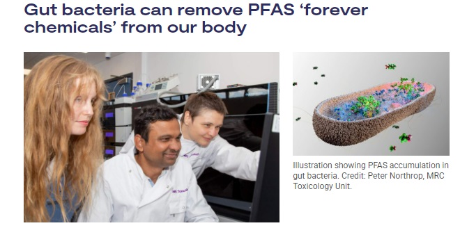 オクスフォード大学の研究者によれば、六種類の腸内バクテリアが、最大でPFASの70%を除去することができるという。
