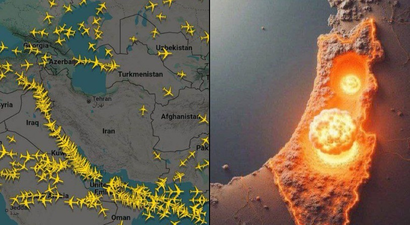 航空機の飛行経路を見ると、イスラエルとイランの上空を避けるように、航空機が飛んでいるのがわかる。