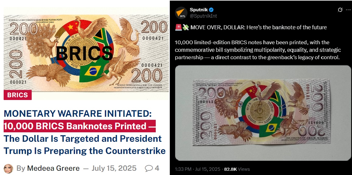 スプートニクなどが、BRICS通貨の記念紙幣が10,000枚印刷されて、参加者にお土産として配られる予定だったことを報じている。