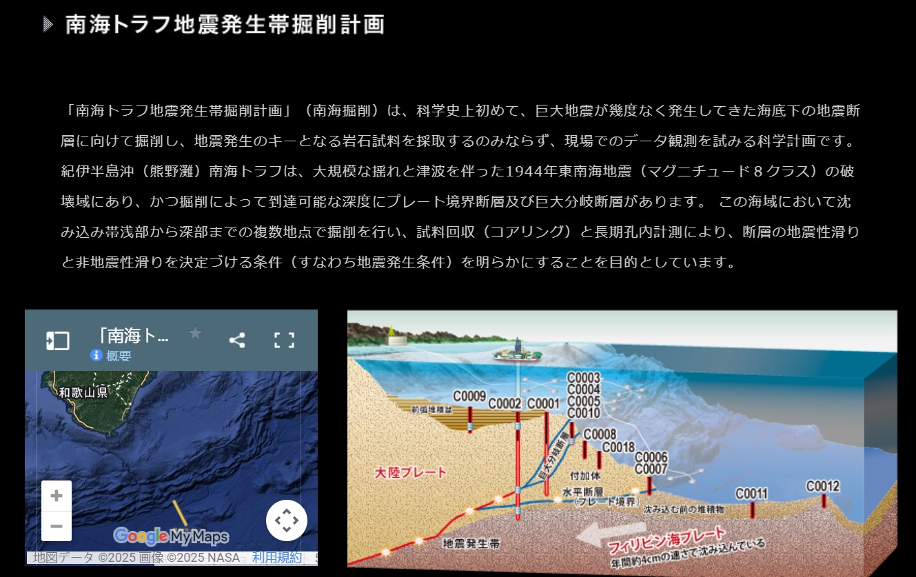 ちきゅう号の予定を見ると、11月に海底で津波発生を研究するそうだが、海底を掘削して刺激するのはやめてほしいよね。