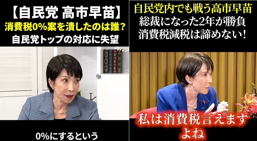 高市は消費税減税を総裁選以前から訴えており、食料品に関しては消費税0%にするべきとの主張をしていたことがある。