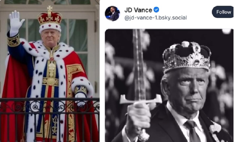 ホワイト・ハウスは、これを逆手におちょくって、王冠をかぶったトランプに、ペロシなど民主党指導者が膝をつく映像を公開。