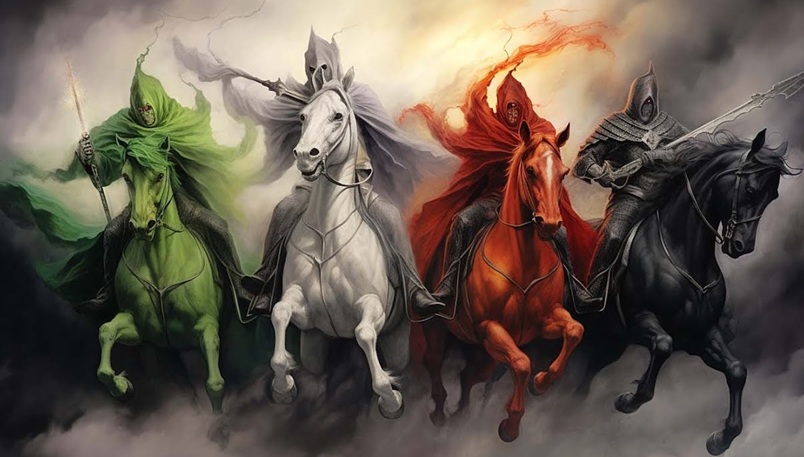 黙示録の四騎士とは、「疫病」「戦争」「飢餓」「黄泉」であり、これら四騎士が訪れた場所では、大勢の人が死ぬことになる。