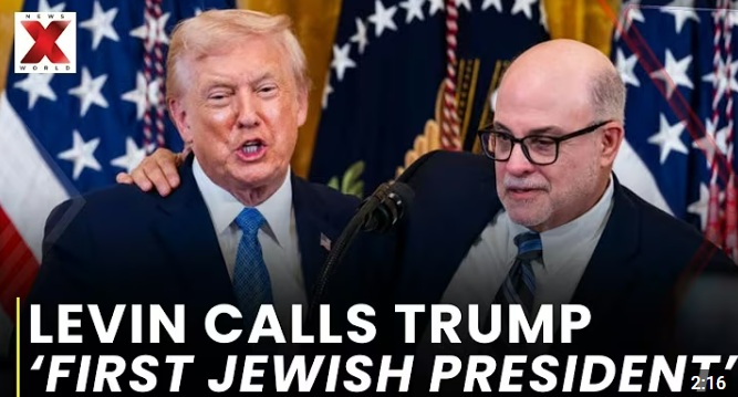 マーク・レビンが「あなたは米国大統領に就任した初のユダヤ人だ」と言うと、トランプは「その通り」と、ユダヤ人であると認めた。