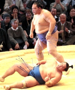 相撲界のたたかう老人、我らの魁皇の形相(ぎょうそう)! 闘う男の覇気がむき出しだ! ♪魁皇ォ 魁皇ォ 魁皇ォ! 満場割れんばかりの声援に 見事に応えた闘う老人、我ら の魁皇が好調・豊真将を小手投げで下した瞬間だ。 魁皇の小手投げは“凶器”と言われ、数多くの力士が病院に送られた。この日も、魁皇=破壊王という異名どおりの投げが決まったので、さすがの豊真将も脱臼をおそれて自分からスッ飛んで投げられた。 朝青龍のこんな憤怒顔には及ばないが、この日の魁皇の“会心顔”は、「たたかう老人」の顔だった。 ◆2010/11/22(月) 知事は駄目だが、県民は最高!