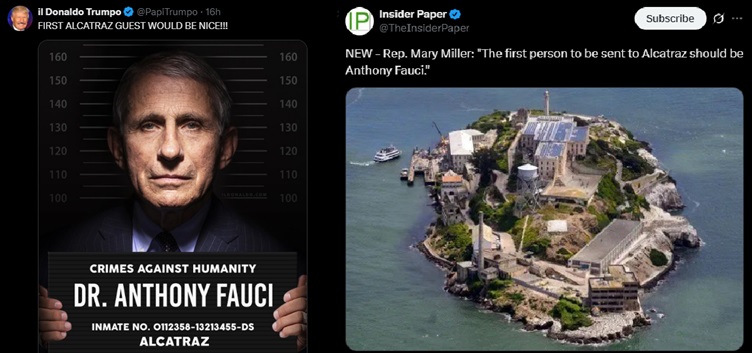 その監獄に入る第一号はファウチにしようと、トランプがSMSで発言しており、ファウチ包囲網は徐々に狭くなっている。