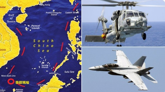 中国が領有を主張する南シナ海の境界線上で、半日のうちに軍用ヘリMH60Rと戦闘機A18が墜落したのは異常。