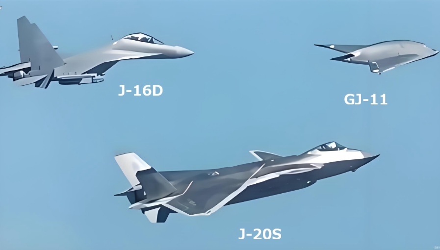戦闘機Jー20Sは二人乗りなのだが、一人が本機隊を操縦し、もう一人が三機のステルス無人機を同時に指揮できるそうである。