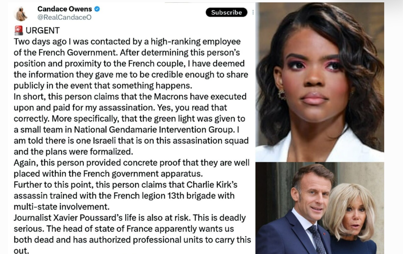 これで、裁判で勝ち目のなくなったマクロンは、口封じのためにキャンディス・オーウェンスの暗殺をヒットマンに指令したそうだ。