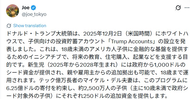 サンタクロースのクリスマスプレゼントのような大盤振る舞いだが、トランプが早く日本にも来て、消費税を廃止してくれるといいな。